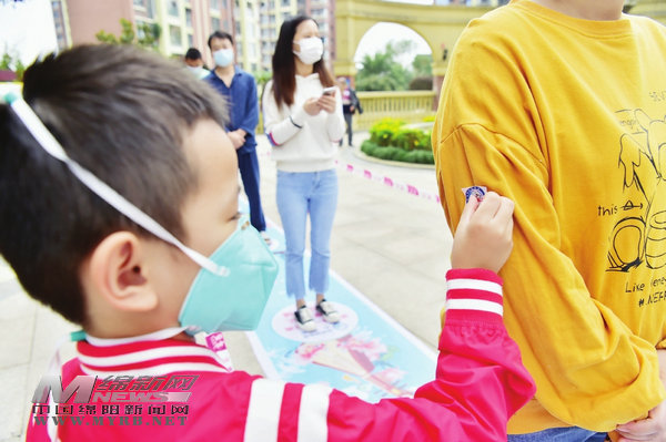 在拉開安全距離的同時,社區(qū)工作人員和志愿者還為核酸采樣注入更多的文明與溫度。“生活需要儀式感,核酸采樣也可以有儀式感,我們在轄區(qū)25個小區(qū)鋪設(shè)了這樣的‘一米線’,是想讓社區(qū)居民的生活充滿樂趣,更有溫度。”陽光社區(qū)黨委書記盧青介紹,以往的“一米線”很單調(diào),距離不好控制,現(xiàn)在用卡通人物鋪設(shè)的“一米線”,不僅顏色豐富,還有幽默的提示性話語,讓社區(qū)居民更容易接受,保持輕松的心情。