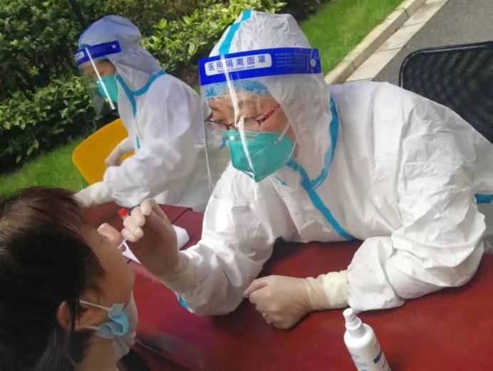 離退休第一黨支部黨員陳佳,在居家辦公期間,她始終不忘自己是一名醫(yī)務(wù)工作者,穿上防護(hù)服后就立即投入小區(qū)抗疫工作。