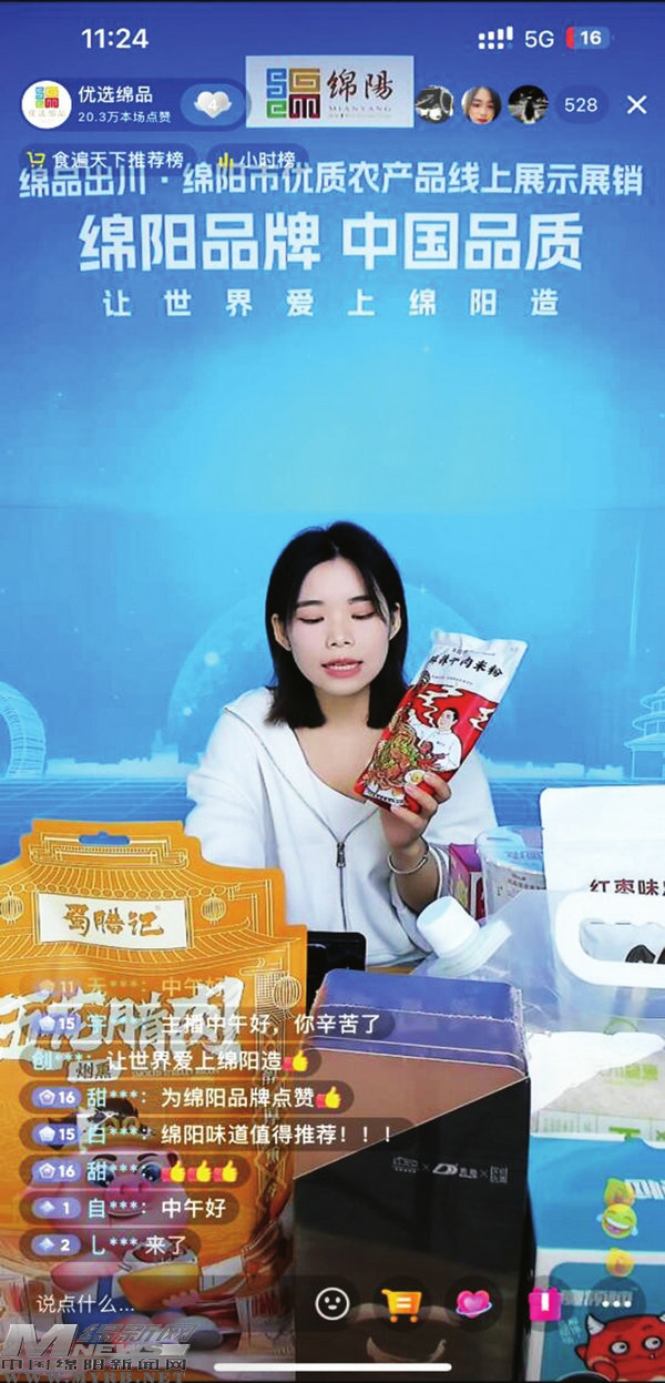 10月11日,綿品出川·綿陽市優(yōu)質(zhì)農(nóng)產(chǎn)品直播間吸引12萬網(wǎng)友在線“圍觀”、點(diǎn)贊、下單。