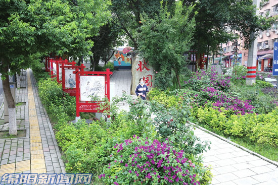 “歐陽(yáng)修晚年自號(hào)‘六一居士’……”“粗繒大布裹生涯,腹有詩(shī)書(shū)氣自華。”“學(xué)富五車、連中三元……”城郊街道三里社區(qū)的“狀園”,緊鄰綿陽(yáng)中學(xué),是一座以“狀元”文化為主題的“口袋公園”,占地約500平方米,其中歐陽(yáng)修生平的牌匾群、激勵(lì)人們求學(xué)上進(jìn)的名言墻、古代科舉考試文化碑,包含濃濃的地域文化,吸引著周邊群眾、師生和游人到此休憩、打卡。