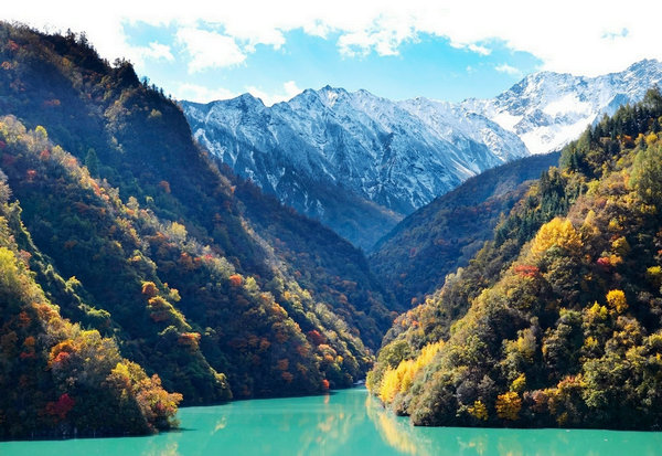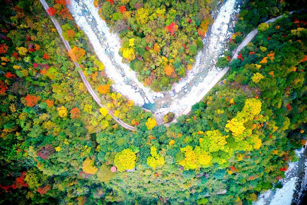 沿著九環(huán)東線,順著火溪河逆流而上,只見河流兩岸層林盡染,漫山遍野都是紅葉和彩林,放眼望去,紅、黃、紫、綠等色彩錯雜其間,美麗至極。這是一條80余公里長的紅葉彩林走廊,其間有雪山、有湖泊、有古寨、有白馬風(fēng)情,這里遠(yuǎn)離塵囂,空氣清新,目之所及五彩繽紛,呈現(xiàn)出層林盡染的秋日美景。