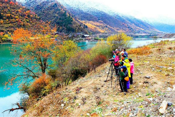 黃羊關(guān)藏族鄉(xiāng),崇山峻嶺中,五顏六色的樹林遍布其間,近處的小溪,遠(yuǎn)處的雪山,宛若一幅巨大的風(fēng)景畫。偶爾吹起的山風(fēng),包裹著純潔的自然氣息拍打著游人的臉龐。賞過植物之美,稍微移步,又可領(lǐng)略金絲猴的魅力,數(shù)十米高的樹叢,就是這群精靈們的歡樂世界,時而爬上樹巔,時而躍至地面,相互嬉鬧的場面更是讓人忍俊不禁。