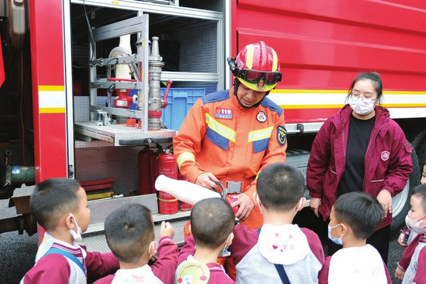 “消防員叔叔的救援本領(lǐng)是怎樣練成的?”孩子們非常好奇。隨著指揮員一聲令下,消防員憑借一根繩索在短短幾十秒內(nèi)攀爬上四樓,孩子們一個(gè)個(gè)被驚得目瞪口呆,“就像電影里的‘蜘蛛俠’,一下子就上去了……”孩子們對消防員叔叔的“超能力”表示驚訝和贊嘆。