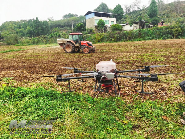綿陽(yáng)新聞網(wǎng)訊 “2022秋小麥播種開(kāi)始!”隨著一聲令下,施肥車(chē)轟鳴著駛進(jìn)地里,肥料從車(chē)后的旋轉(zhuǎn)裝置中噴出,均勻地灑在土壤表面;無(wú)人機(jī)騰空而起,低空快速掠過(guò),麥種從轉(zhuǎn)盤(pán)中拋出,撒在田里;翻耕機(jī)緊隨其后,裹挾著泥土和肥料,把一粒粒麥種翻進(jìn)土里(如圖)。