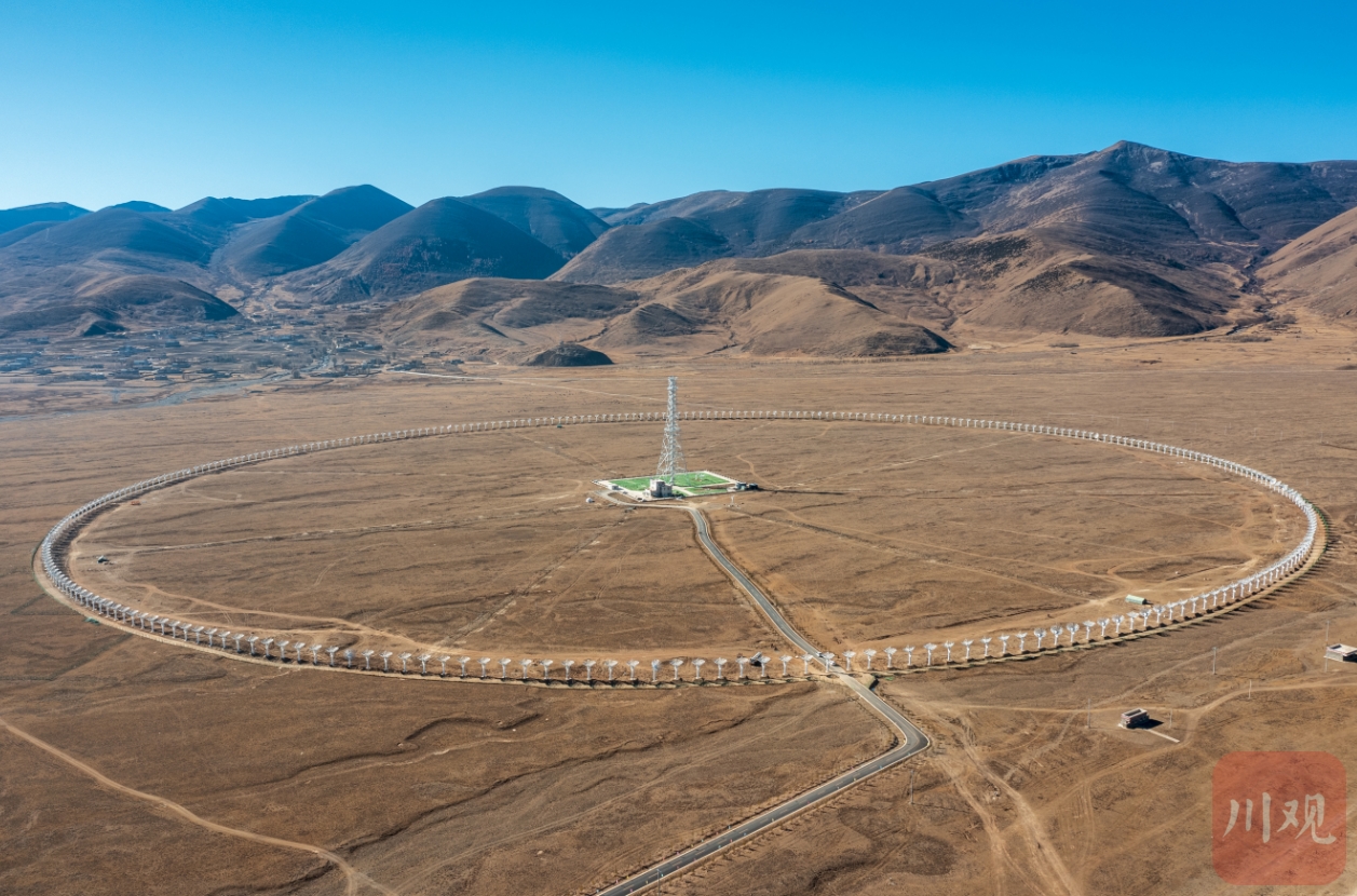 11月13日,甘孜州稻城縣色拉壩子草原,湛藍(lán)天空的映襯下,最后一面天線面被吊起安裝就位。國家重大科技基礎(chǔ)設(shè)施——“子午工程”二期圓環(huán)陣太陽射電成像望遠(yuǎn)鏡主體工程正式完工。聯(lián)調(diào)聯(lián)試結(jié)束后將投入試運(yùn)行。