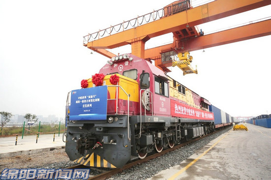 中歐班列“成渝號(hào)”從綿陽皂角鋪物流基地出發(fā)