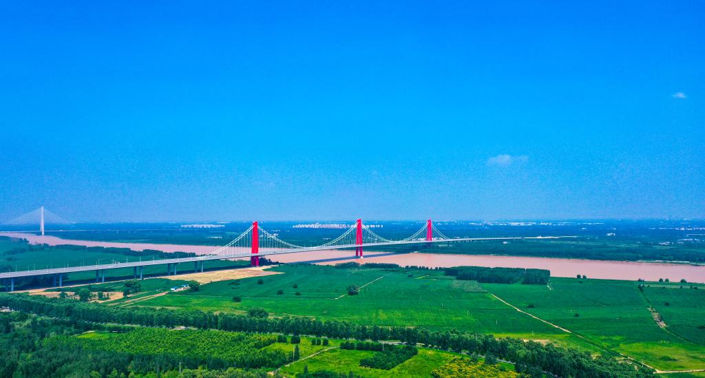 2022年1月建成通車的濟(jì)南黃河鳳凰大橋,將加速濟(jì)南由“大明湖時代”邁向“黃河時代”。(濟(jì)南起步區(qū)管委會供圖)