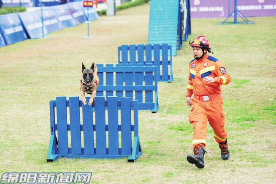 綿陽新聞網(wǎng)訊 近日,全省消防救援總隊第二屆搜救犬技術(shù)比武活動在綿陽舉行。26名訓(xùn)導(dǎo)員、26只搜救犬同臺競技,一展身手。最終,我市獲得本次比賽冠軍。