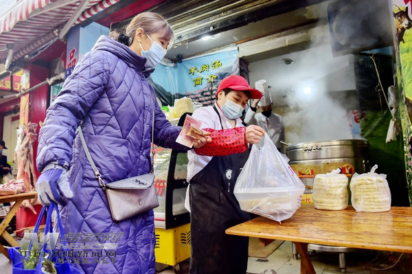 “老板,幫我稱一根羊腿。”“老板,我要兩份羊雜,打包帶走。”在建設(shè)街一家羊肉店前,市民的催促聲,把老板和店員忙得團(tuán)團(tuán)轉(zhuǎn)。“今天早上拉來五條羊子,總共有300多斤。受疫情影響,總量銷售比以前有點(diǎn)下降。”老板自信地說,“但不礙事,相信會(huì)越來越好。”