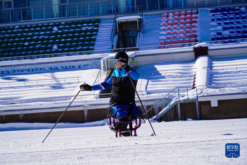2月21日,哈薩克斯坦冬殘奧運(yùn)動員謝爾蓋·烏索利采夫在訓(xùn)練中。