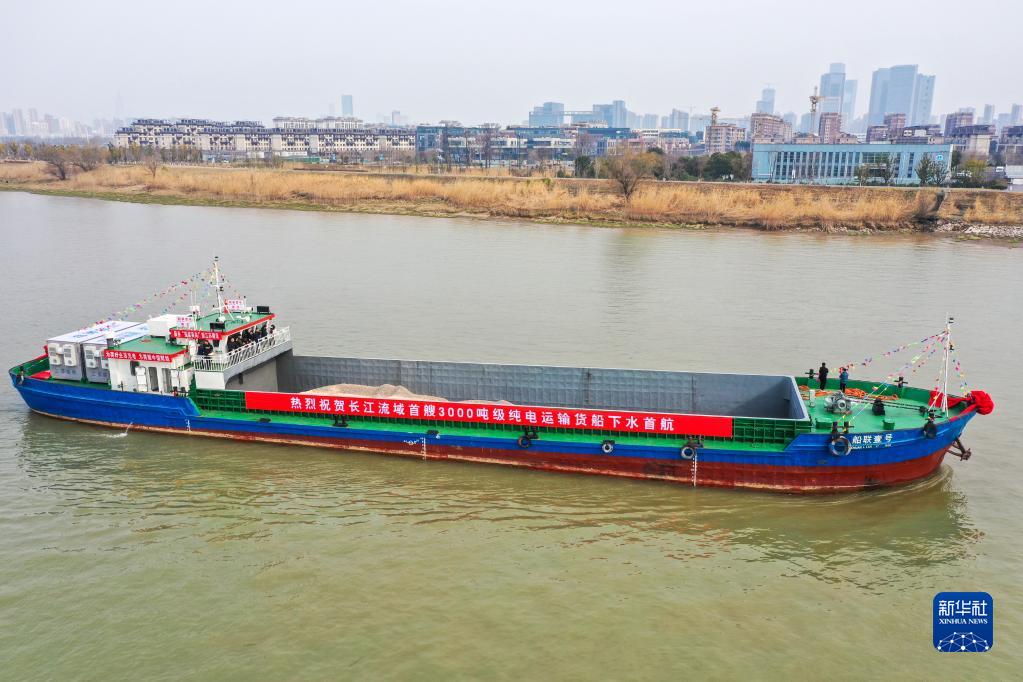2月22日,長江流域首艘3000噸級純電動貨船“船聯1號”在南京首航。這艘船由燃油貨船改造而成,把電能作為整艘船的唯一能源,實現零排放、低噪音、無污染。