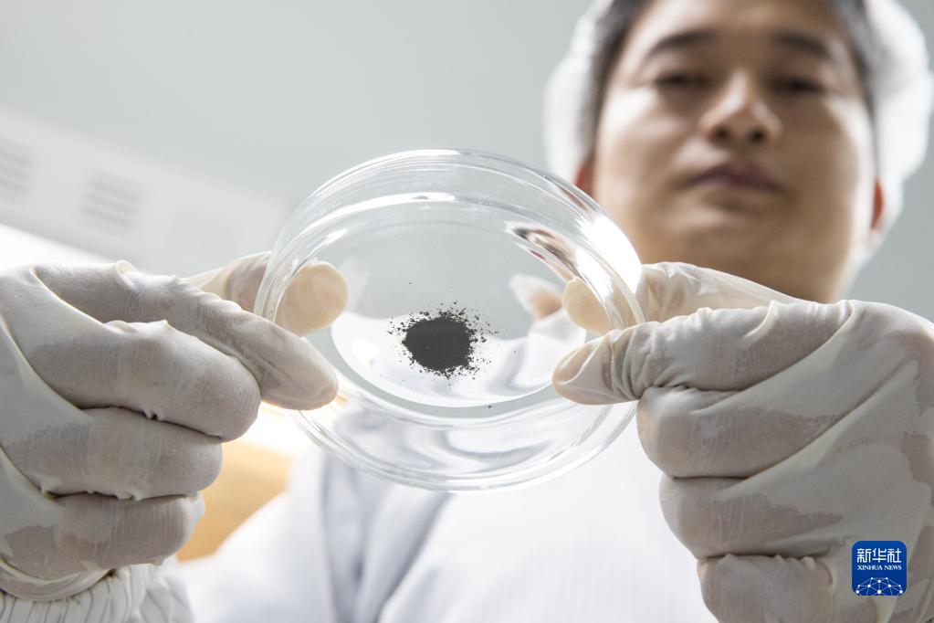 2021年10月15日,在中科院地質(zhì)與地球物理研究所月球樣品潔凈室,田恒次副研究員在處理月球樣品。新華社記者 金立旺 攝