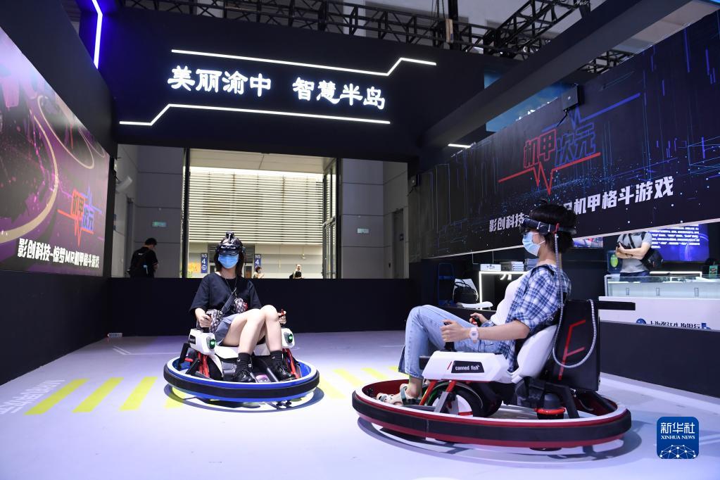 2021年8月23日,觀眾在2021中國國際智能產(chǎn)業(yè)博覽會上通過MR技術(shù)體驗(yàn)機(jī)甲格斗游戲。新華社記者 唐奕 攝