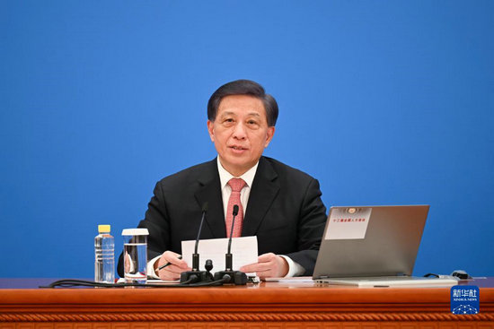 3月4日,十三屆全國人大五次會議新聞發(fā)布會在北京人民大會堂新聞發(fā)布廳舉行,由大會發(fā)言人張業(yè)遂就大會議程和人大工作相關(guān)問題回答中外記者提問。為有效防控疫情,共同維護(hù)公共衛(wèi)生與健康,新聞發(fā)布會采用網(wǎng)絡(luò)視頻形式進(jìn)行。新華社記者 陳曄華 攝