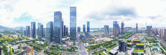 這是深圳前海深港現(xiàn)代服務業(yè)合作區(qū)(2021年9月8日攝,無人機全景照片)。(記者 毛思倩 攝)