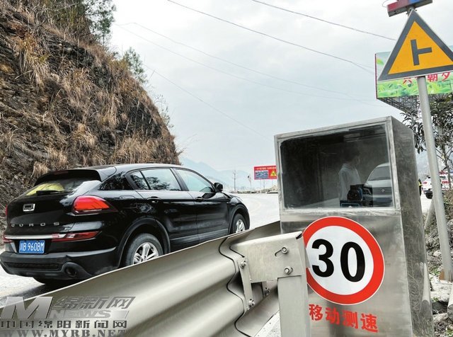 彎道處設(shè)置的移動(dòng)測(cè)速設(shè)備