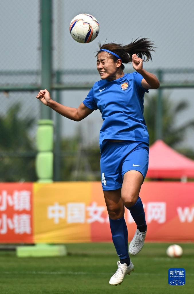 4月7日,北京女足隊球員彭雨瀟(中)在比賽中傳球。