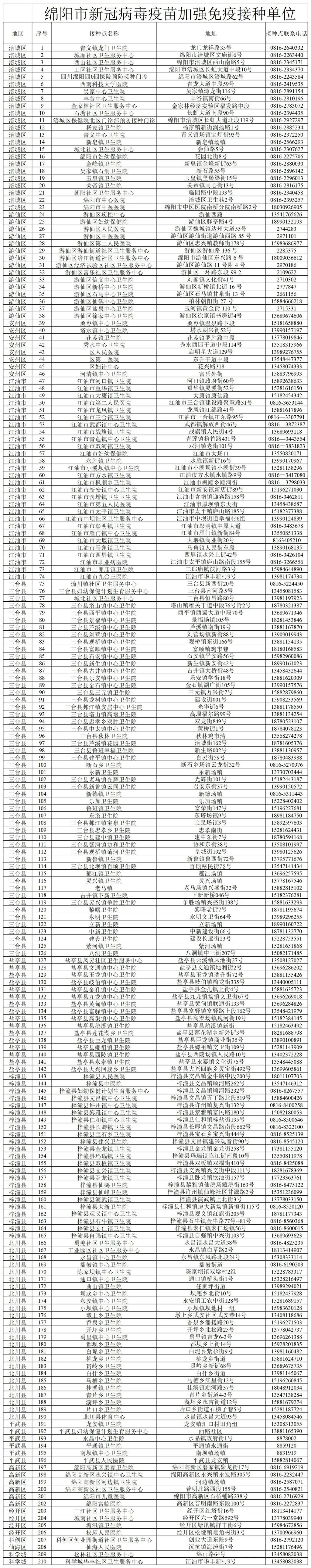 綿陽(yáng)市疫苗接種單位名單