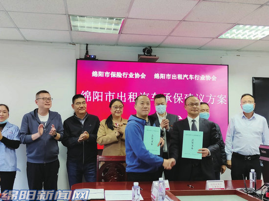 會(huì)上,市保險(xiǎn)行業(yè)協(xié)會(huì)和市出租汽車行業(yè)協(xié)會(huì)簽訂了綿陽市出租汽車承保建議方案。(唐甜 文/圖)
