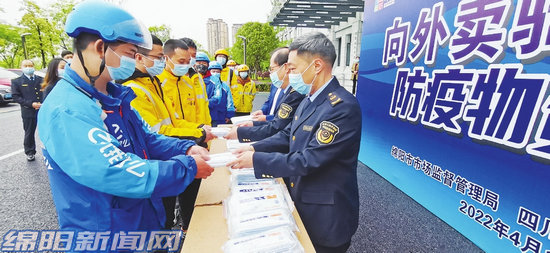 “我們每天都不停地穿梭在城市的大街小巷,口罩是必備的防疫物資,由于佩戴的口罩時間不能太長,因此更換較為頻繁,非常感謝市場監(jiān)管局和愛心企業(yè)對我們外賣小哥出行防疫安全的關注和愛護。”美團外賣小哥趙亮說。(張根 綿報融媒記者 任明勇 文/圖)