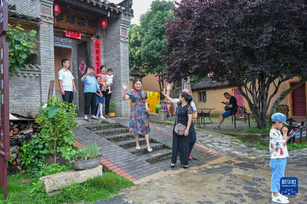 游客在新縣田鋪大塆一農家樂就餐后離開(資料照片)。新華社發(fā)