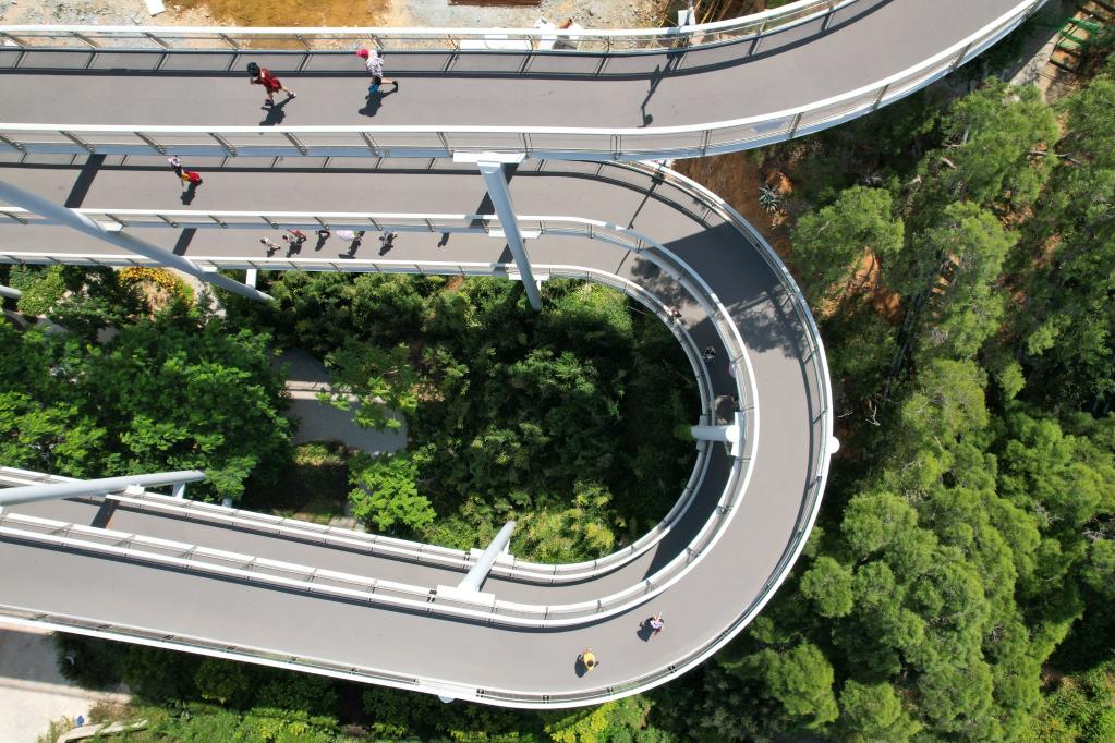 2021年10月5日,游客在廈門(mén)山海健康步道上行走(無(wú)人機(jī)照片)。新華社發(fā)(葉怡亨攝)