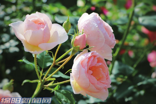 近日,位于安州區(qū)塔水鎮(zhèn)宇承玫瑰園的樹樁玫瑰爭(zhēng)相怒放,紅的勝火、粉的似霞、黃的淡雅、白的清新……朵朵花兒在枝頭相互簇?fù)怼訉盈B疊,在藍(lán)天白云下隨風(fēng)搖曳、毫不吝嗇地綻放姿容,盡情舒展。