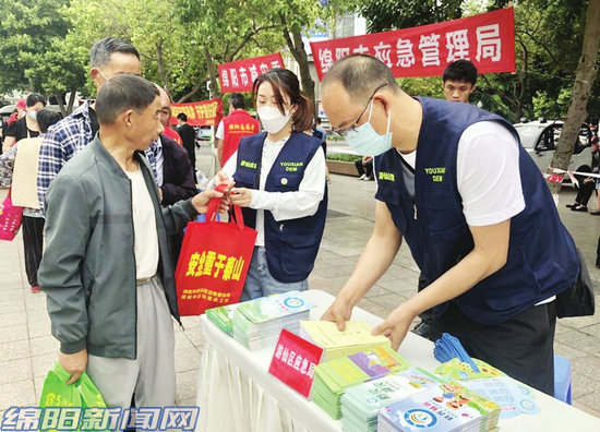 “遇地震,先躲避,桌子床下找空隙”“下暴雨,如果遇到泥石流,不要往下游走”……5月12日上午9點30分,記者在鐵牛廣場看到,來自市級部門以及涪城區(qū)、游仙區(qū)20余家單位齊聚于此,開展防災減災知識集中宣傳教育活動。廣場上懸掛著防災減災宣傳標語,宣傳展板有序地擺放在廣場四周,工作人員向市民發(fā)放防災減災宣傳手冊、宣傳單等資料,大力宣傳防災減災法律法規(guī)、政策預案及各類避險自救互救知識,并就防災減災專業(yè)知識進行耐心講解。市消防救援支隊還在現(xiàn)場擺放了消防安全體驗設施,在做好防疫安全的情況下,組織群眾參與體驗,讓市民在體驗中進一步了解防災救災知識。
