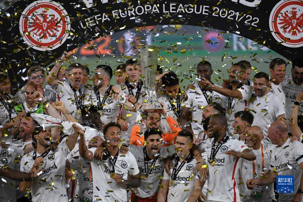 當(dāng)日,在西班牙塞維利亞舉行的2021-2022賽季歐羅巴聯(lián)賽決賽中,德甲法蘭克福隊(duì)與蘇超格拉斯哥流浪者隊(duì)在常規(guī)時(shí)間和加時(shí)賽中戰(zhàn)成1比1。最終通過點(diǎn)球大戰(zhàn),法蘭克福隊(duì)以總比分6比5獲勝,奪得冠軍。