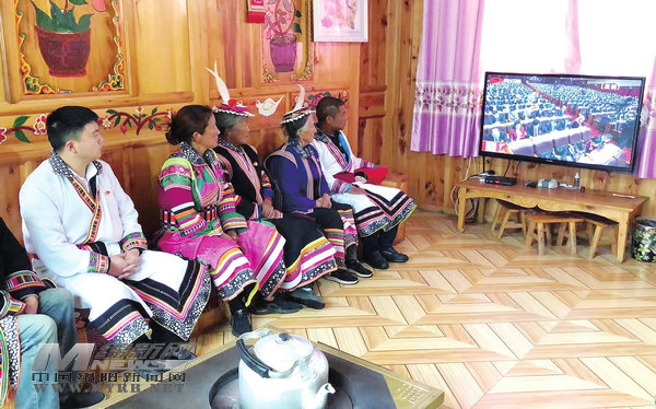 平武白馬群眾在家收看(胡宇綿報(bào)融媒記者 任露瀟 攝)