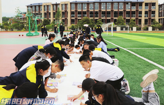 活動(dòng)現(xiàn)場,100余名學(xué)生圍坐在百米巨幅畫卷旁,緊扣活動(dòng)主題,結(jié)合學(xué)習(xí)、思想、生活實(shí)際,大膽構(gòu)思、自由創(chuàng)作,生動(dòng)描繪著偉大祖國、偉大時(shí)代、偉大夢想、大美北川的絢麗圖景,深情表達(dá)對(duì)黨、祖國、人民和家鄉(xiāng)的無限熱愛,由衷詮釋著“強(qiáng)國復(fù)興有我”的強(qiáng)烈心聲。(席婷 宋林 綿報(bào)融媒記者 楊檎 文/圖)