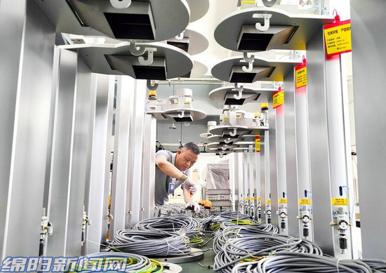 在綿陽沃思測(cè)控技術(shù)有限公司內(nèi),工人正在安裝調(diào)試米重測(cè)控系統(tǒng)