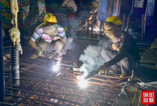 備受豐谷、松椏?jī)傻鼐用耜P(guān)注的豐谷渡改橋項(xiàng)目建設(shè)又有新進(jìn)展。6月8日凌晨1點(diǎn),記者來(lái)到施工現(xiàn)場(chǎng)時(shí)看到,橋面上燈火通明,幾位焊接工人正緊張有序地同時(shí)作業(yè),一道道電焊弧光照亮了夜空。凌晨4點(diǎn)開(kāi)始,隨著施工人員將混凝土緩緩澆筑進(jìn)施工模板,豐谷渡改橋主橋中跨正式合龍作業(yè)。
