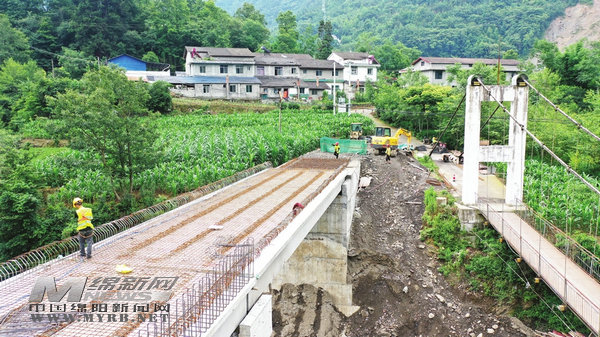 金鼓村連接外界的交通僅有一座鐵索橋,群眾出行極為不便,大量農(nóng)產(chǎn)品、中藥材無(wú)法及時(shí)運(yùn)出,嚴(yán)重制約了產(chǎn)業(yè)發(fā)展和群眾致富。為解決群眾出行,我市啟動(dòng)了陳家壩鎮(zhèn)金鼓村鐵索橋改公路橋項(xiàng)目。“橋梁全長(zhǎng)76米、寬5.5米,建成后將全面結(jié)束人背馬馱的日子,進(jìn)入到公路通到家門(mén)口的新時(shí)代。”北川羌族自治縣交通運(yùn)輸局有關(guān)負(fù)責(zé)人介紹,項(xiàng)目總投資320萬(wàn)元,在陳家壩鎮(zhèn)金鼓村連接四坪村跨楊家溝修建公路橋梁,替換原來(lái)的鐵索橋,6月底全部完工。當(dāng)?shù)卮迕窀嬖V記者,之前的鐵索橋和便橋很危險(xiǎn),曾被大水沖毀多次,村民一直盼望大橋盡快建成。