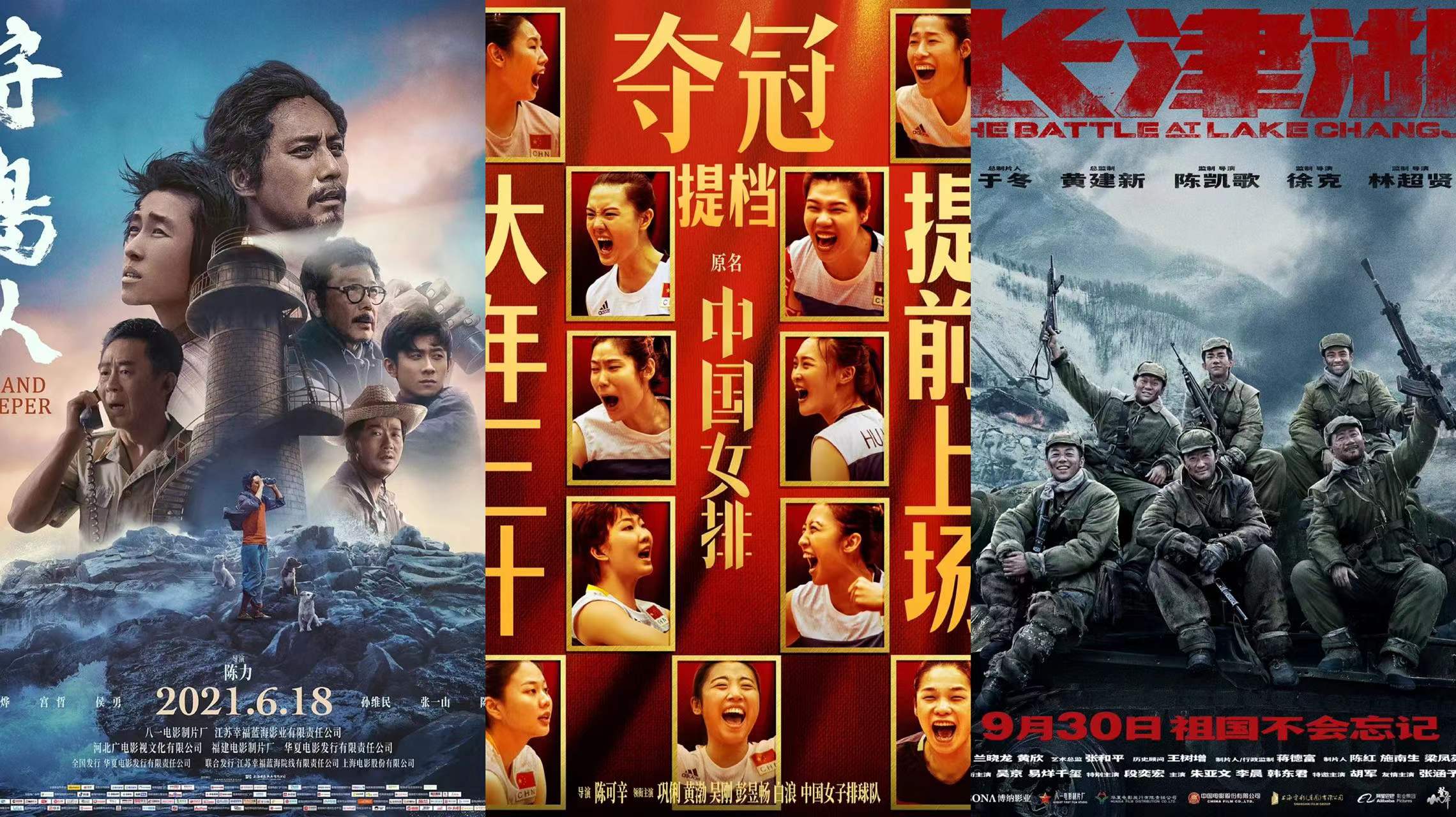 《守島人》海報(左)、《奪冠》海報、《長津湖》海報(右)
