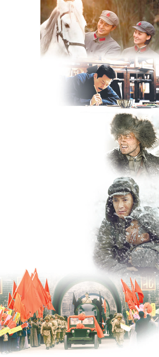 圖片自上而下分別為電視劇《可愛的中國》《覺醒年代》《光榮與夢想》《跨過鴨綠江》《百煉成鋼》劇照。