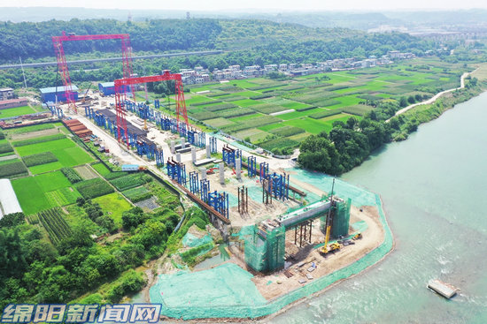 科技城涪江大橋項(xiàng)目位于科技城大道二期涪城區(qū)青義鎮(zhèn)和游仙區(qū)石馬鎮(zhèn)交界位置,橫跨涪江。建設(shè)內(nèi)容包含跨涪江特大橋一座、互通立交一座、涪城區(qū)和游仙區(qū)兩側(cè)引橋及其他附屬配套設(shè)施,橋梁全長約1.1公里。已完成橋梁樁基及主橋墩施工,正在按計(jì)劃推進(jìn)施工。