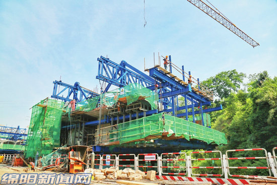 東西第二干道工程項(xiàng)目貫穿涪城區(qū)、科技城新區(qū)、科學(xué)城、游仙區(qū),道路設(shè)計(jì)全長約8.9公里。高水中街拓寬段已完成,清水灣大橋已完成下部結(jié)構(gòu)和上部結(jié)構(gòu)施工,正在進(jìn)行主橋箱梁施工。老龍山隧道已掘進(jìn)483米,西山北路擋墻段已開工。