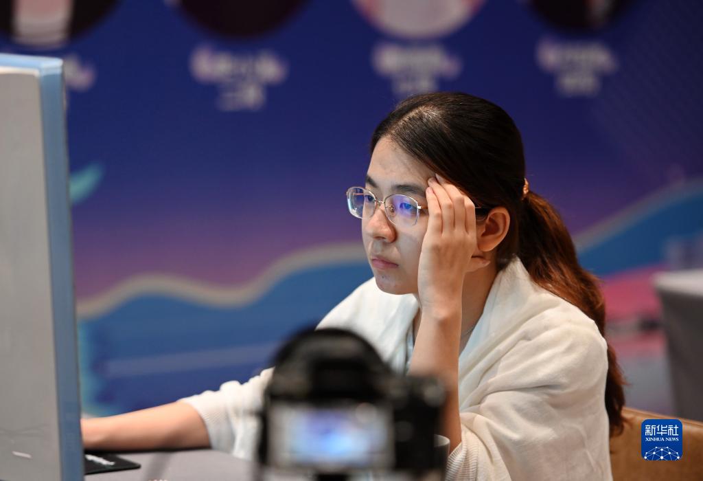 8月1日,中國(guó)棋手王晨星五段在對(duì)陣中國(guó)臺(tái)北棋手盧鈺樺四段的比賽中。