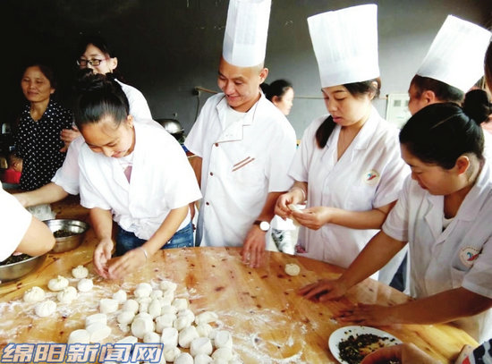 村民與職業(yè)技術(shù)學校師生學習中式面點