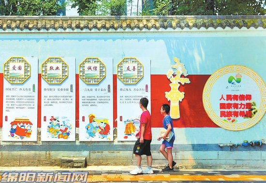 在綿陽,一堵堵圍墻“活”了起來,變成了會講故事的“文化墻”,展示著通俗易懂的文明故事、社會主義核心價值觀的實踐場景;一棟棟樓宇間,水泥墻壁同樣被利用起來,展示“身邊好人”“道德模范”事跡……綿陽正以一個個具象,生動詮釋著文明的溫暖和力量,陣陣文明新風撲面而來。