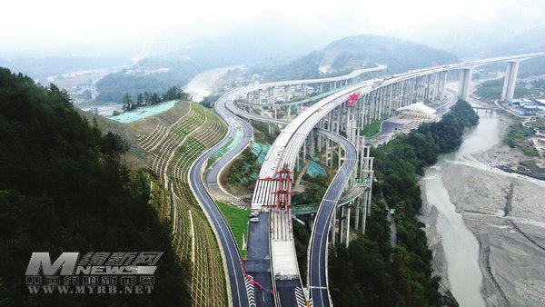 綿陽新聞網(wǎng)訊 9月26日,隨著最后一榀T梁精準(zhǔn)放置到位,歷時(shí)4年的九綿高速平武涪江特大橋主體工程建設(shè)全面完成,順利貫通(如圖),標(biāo)志著九綿高速公路全線的控制性工程取得階段性成功,為實(shí)現(xiàn)九綿高速全線貫通及廣平高速年底通車奠定了堅(jiān)實(shí)基礎(chǔ)。
