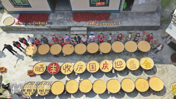 近日,在海拔1300米的北川漩坪鄉(xiāng)張坪村,10戶村民用剛剛豐收的獼猴桃、冬桃、板栗、小黃豆、辣椒、核桃、柿子、八月瓜、玉米、花生一共10種農(nóng)作物,拼成“曬豐收、慶國慶、迎盛會”9個(gè)大字(如圖)。