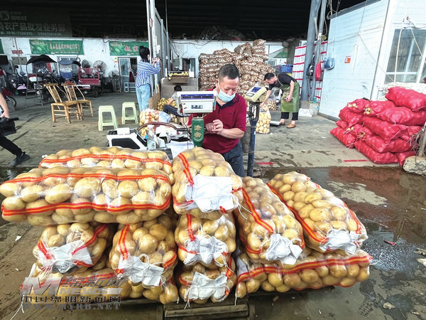 下午4時(shí),高水農(nóng)副產(chǎn)品批發(fā)市場(chǎng)依然很熱鬧,運(yùn)送蔬菜的車輛來(lái)回穿梭,購(gòu)菜的市民忙著挑選,商家忙著打包裝車,土豆、南瓜、冬瓜、辣椒、大蔥等各類蔬菜品類齊全、貨源充足、價(jià)格穩(wěn)定。