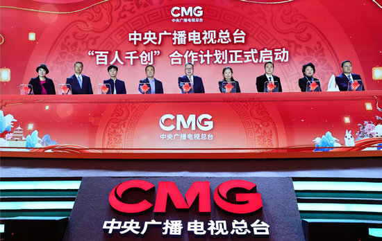 云發(fā)布活動現(xiàn)場,彭健明與總臺創(chuàng)新發(fā)展研究中心召集人楊華,總經(jīng)理室常務(wù)副召集人任學(xué)安,中廣影視衛(wèi)星有限責(zé)任公司董事長、總經(jīng)理黃瑞剛,文藝節(jié)目中心常務(wù)副召集人許文廣,視聽新媒體中心副召集人俞勤,央視頻融媒體發(fā)展有限公司總經(jīng)理、央視國際網(wǎng)絡(luò)有限公司黨委書記、董事長過彤,中廣視資產(chǎn)管理有限公司總經(jīng)理韓峰,2023年總臺春節(jié)聯(lián)歡晚會總導(dǎo)演于蕾共同啟動了總臺“百人千創(chuàng)”合作計劃。