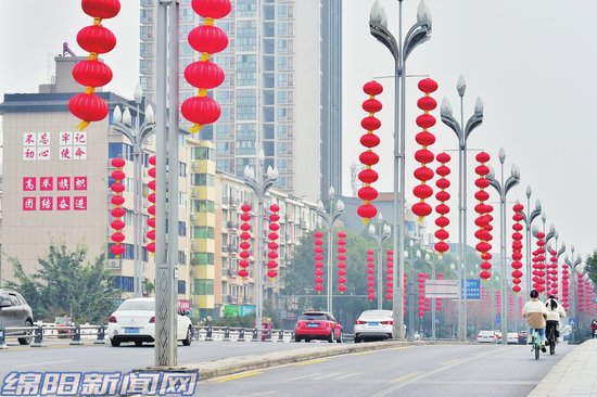 綿陽(yáng)城區(qū)張燈結(jié)彩(綿報(bào)融媒記者 王勇 攝)