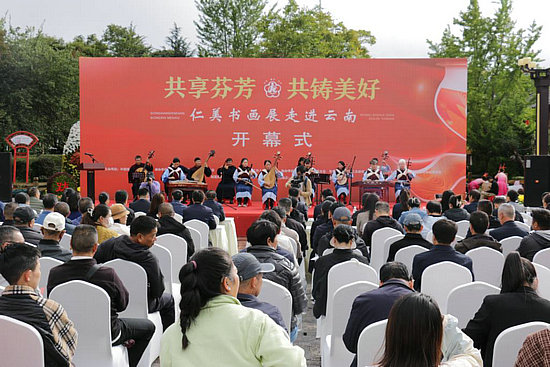 圖為“共享芬芳·共鑄美好”仁美書(shū)畫(huà)展開(kāi)幕式現(xiàn)場(chǎng)。(趙進(jìn)雄 攝)