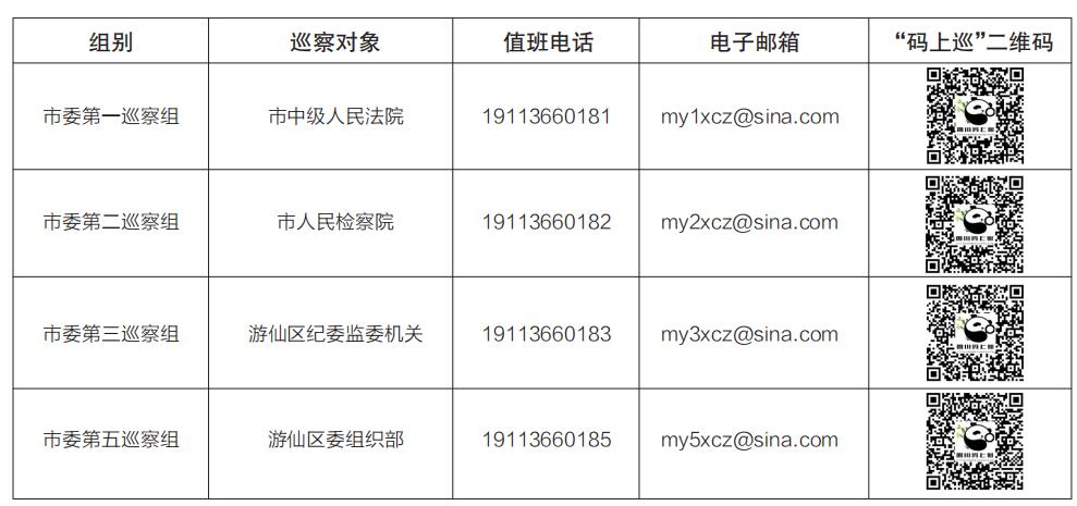 現(xiàn)將八屆市委第五輪巡察第二批次各巡察組分組名單、聯(lián)系方式及“碼上巡”二維碼公告如下,歡迎廣大干部群眾如實(shí)反映有關(guān)情況和問題。