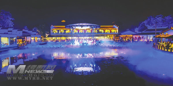 每當(dāng)華燈初上,位于安州區(qū)花荄鎮(zhèn)的“雨村十坊”文創(chuàng)藝術(shù)莊園內(nèi),燈光、噴泉如夢(mèng)如幻;各式火鍋散布在亭臺(tái)間;不同歷史時(shí)期的歌舞演繹,讓人恍若夢(mèng)境。