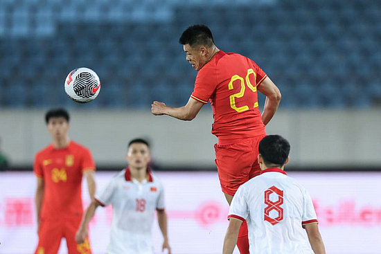 開場后,雙方展開激烈角逐。第13分鐘,中國隊右路定位球傳入禁區(qū),王上源禁區(qū)中路甩頭攻門,越南隊門將鄧文林將球沒收。第27分鐘,越南隊范俊海帶球長途奔襲,過掉王上源后橫向帶球至禁區(qū),打門稍稍偏出。第34分鐘,中國隊謝鵬飛定位球兜入禁區(qū),譚龍搶點頭槌擊中立柱。上半場,雙方均無建樹。